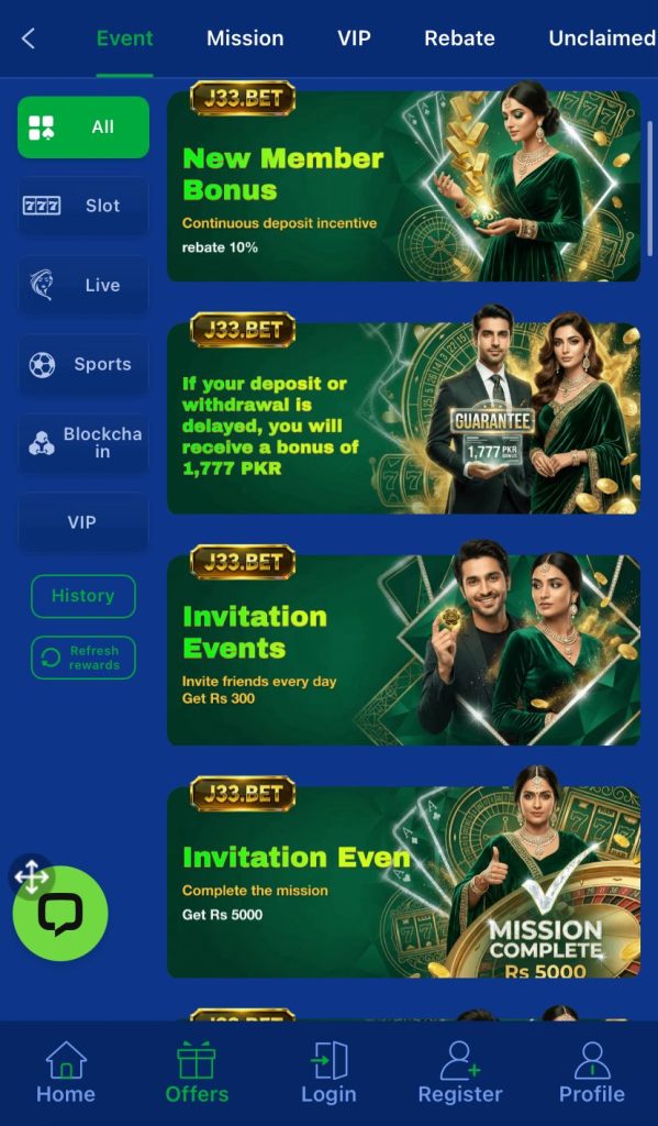 J33 Bet offers multiple reward systems to keep users active:
