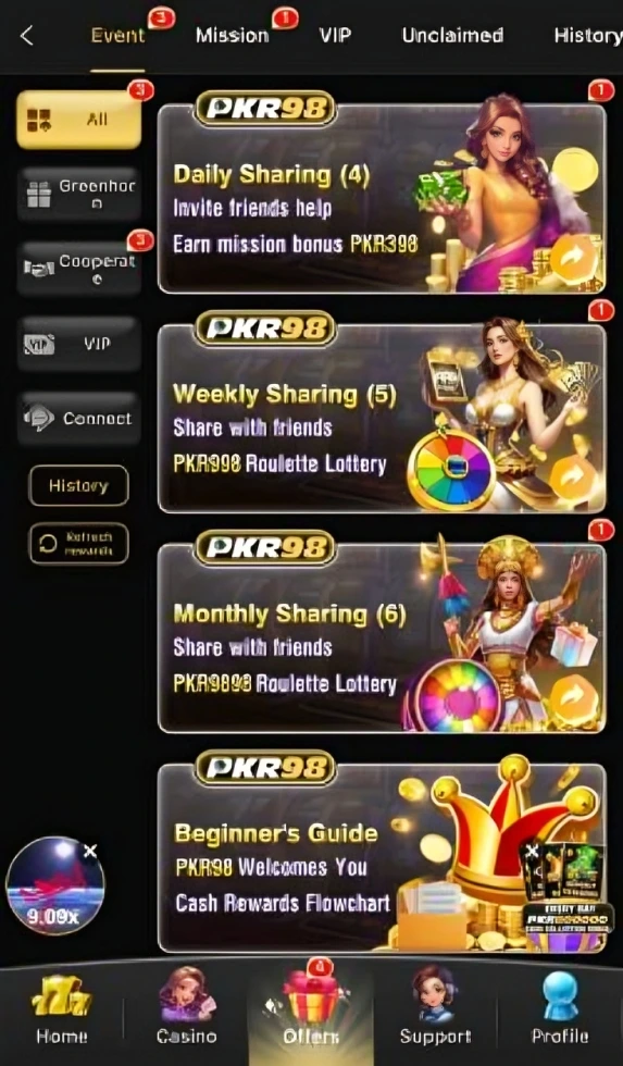 There are multiple ways to earn in PKR98 App: